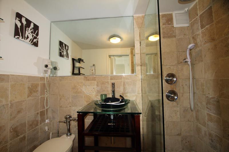 This beautiful unit has been recently renovated with a modern look. The living is all in beige marble floors, the kitchenette comes with toaster oven and is separated from the living area with a bar where can be used for breakfast meals.