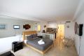 The living area is composed by a queen bed size, a futon sofa that easily can be used as a bed. The bathroom has been redone and show an elegant taste with marble, head shower and luxury finishes. From the unit you can see partially the ocean since the building is located right on the beach.